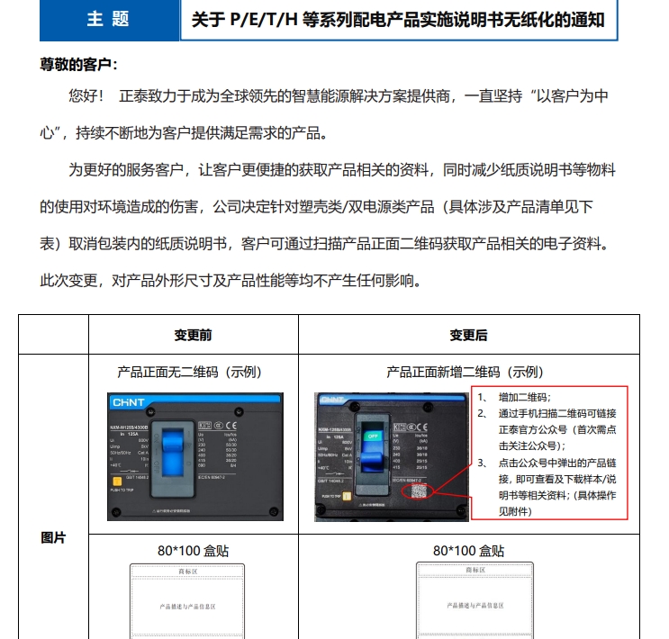 關于 P/E/T/H 等系列配電產(chǎn)品實施說明書無紙化的通知