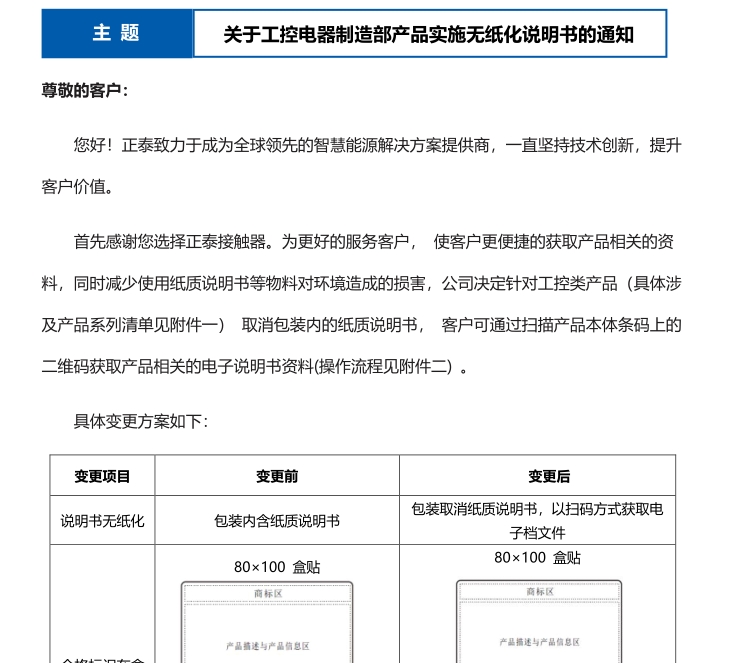 關于工控電器制造部產(chǎn)品實施無紙化說明書的通知