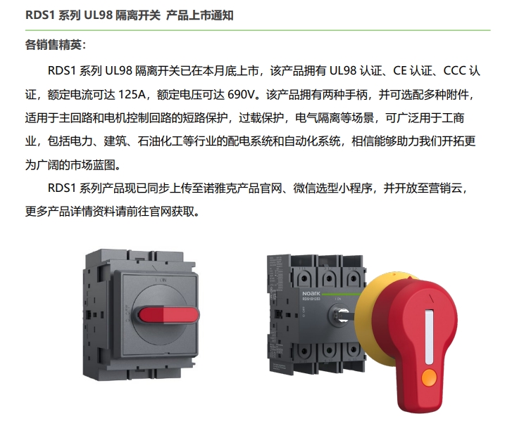 RDS1 系列 UL98 隔離開(kāi)關(guān) 產(chǎn)品上市通知