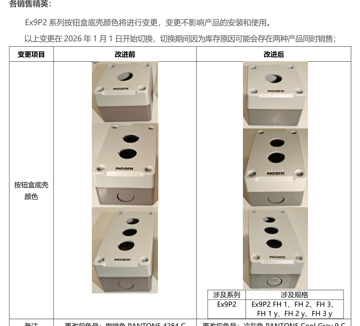 關于 Ex9P2 系列按鈕盒底殼顏色變更的通知