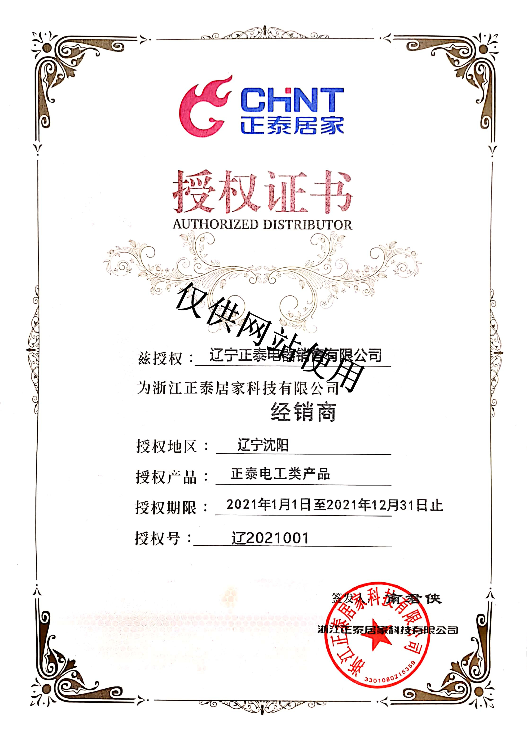 浙江正泰電器股份有限公司授權(quán)證書
